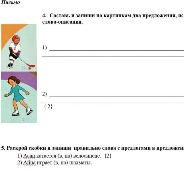 составь и запиши по картинкам два предложения используя слова описания, пожалуйста, срочно очень