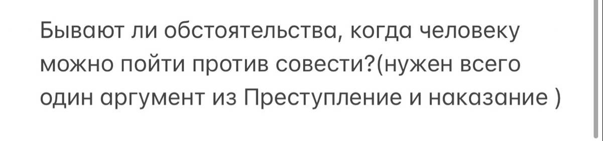 Случай с Родионом Раскольниковым - совершенно другая история о том, может ли человек пойти против совести. Ему нет и не может быть оправдания - ведь он убийца! Причем, он убийца с собственной психологией. Он возомнил, что ему дозволено убийство. Потому что он "право имеет", а жалкая старуха-процентщица - ничтожество и её судьба, её жизнь никакого значения не имеет. Вооружившись собственной теорией, Раскольников имел намерение проверить, будет ли он страдать, совершив преступление. Главный герой Достоевского по сути своей - человек совестливый, поэтому и страдания его привели к признанию в совершённом преступлении.