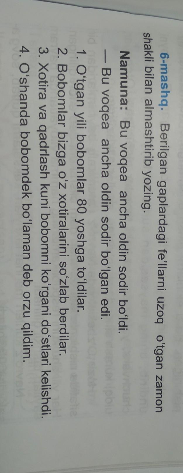 2. Bobomlar bizga o'z xotiralarini so'zlab berdilar.