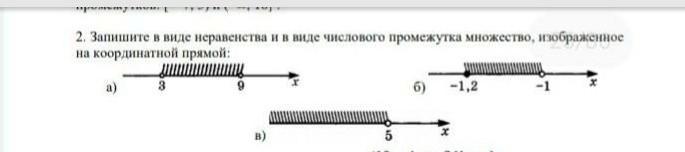 запишите в виде неравенства и в виде числогово промежутка множество изоброжонне на координатной прямой
