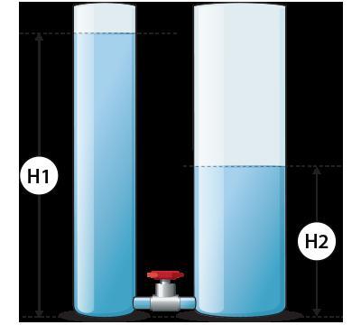 В два сосуда, между которыми находится кран (он закрыт), налита вода.