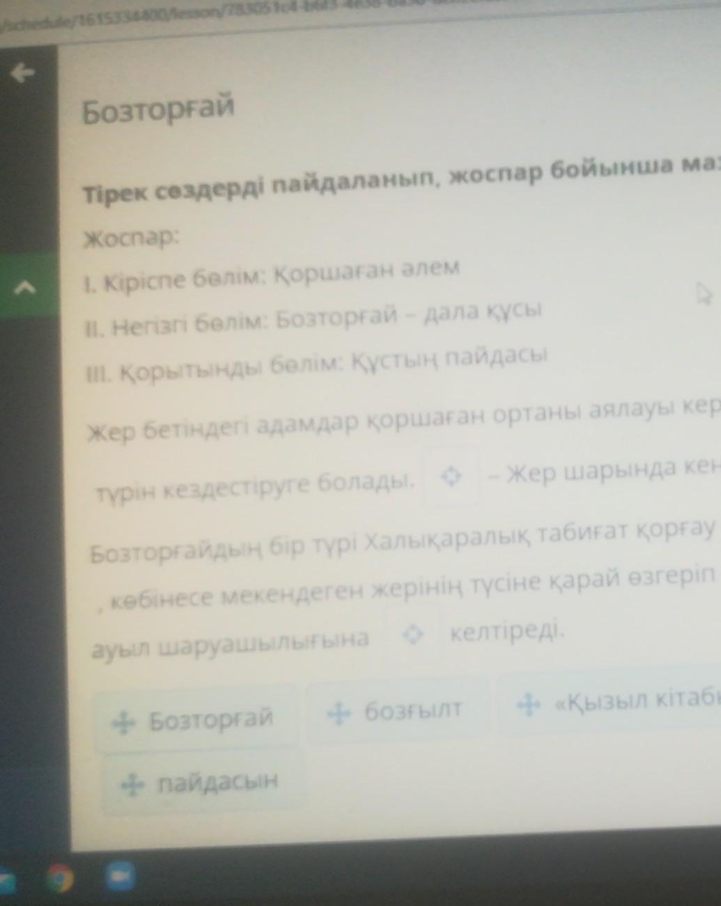 Тірек сөздерді пайдаланып, жоспар бойынша мазмұнда.