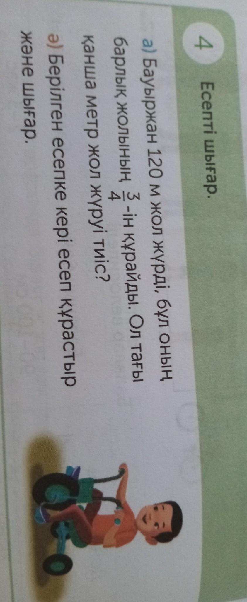 Бауыржан жолдың 3/4-ін өтіп жүрді. Барлық жол 160 метр. Бауыржан неше метр жол өтті?