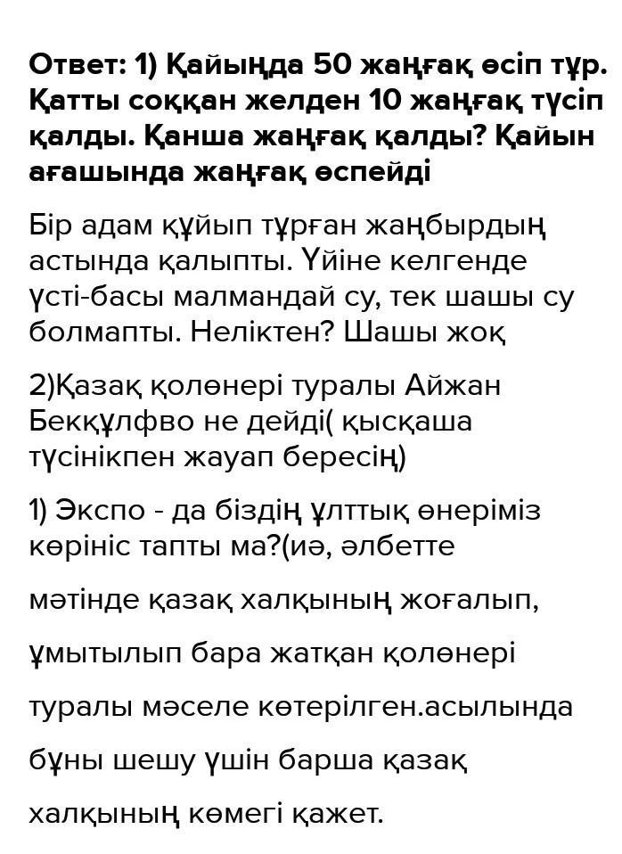 Оқылған тақырыптар бойынша 3 «жеңіл» және 2. «күрделі» сұрақ,