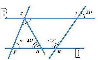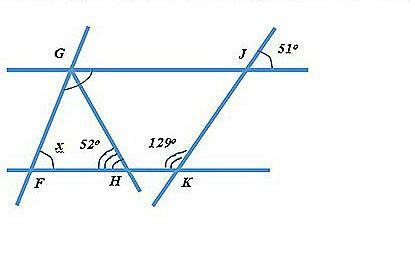 ∠H и ∠JGH накрест леж. ghb GJ║FK⇒ они равны⇒ ∠HGJ= 52°