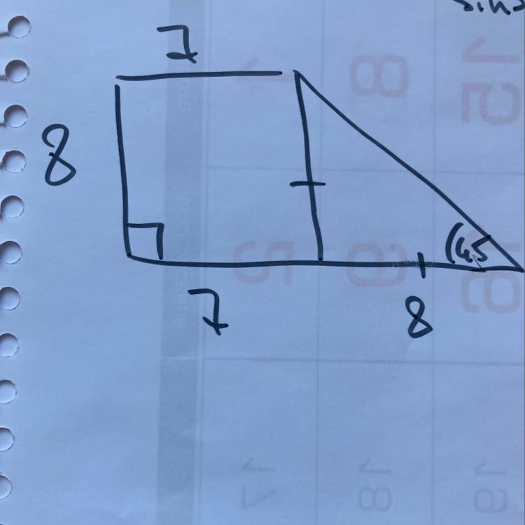В прямоугольной трапеции угол при основании равен 45 меньшее основание равно 7 см высота равна 8 см