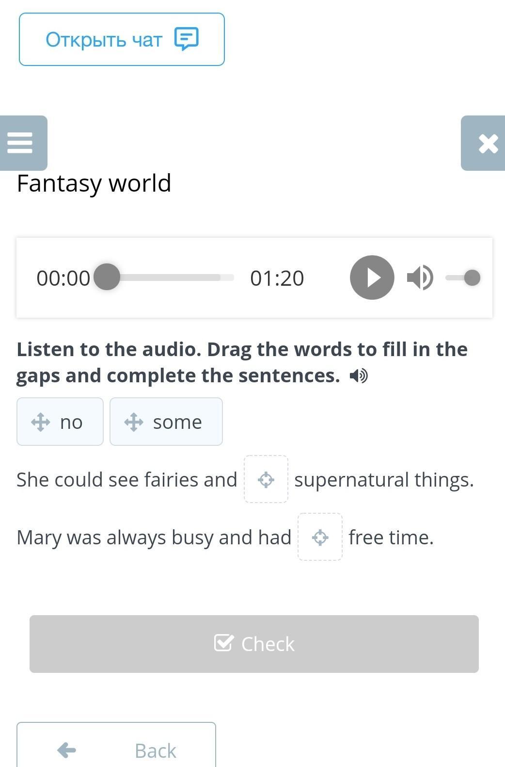 Listen to the audio. Drag the words to fill in the gaps and complete the sentences.