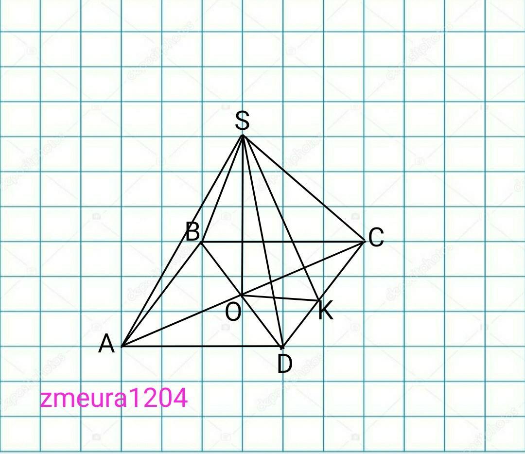 ОК=АВ/2=2/2=1 см проекция апофемы на (АВСD)