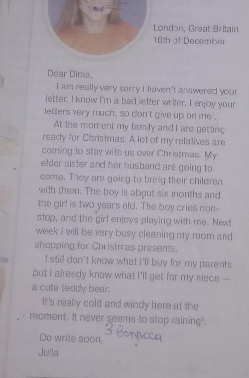 Сейчас я вместе с моей семьей готовимся к рождеству. Много моих родственников придет к нам на рождество. Моя старшая сестра и ее муж собираются прийти. Они возьмут своих детей с собой. Мальчику около 6 месяцев, а девочке около 2-х лет. Он плачет без остановки, а ей нравится играть со мной. На следующей неделе я буду занят уборкой моей комнаты и покупкой подарков на рождество.