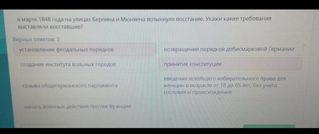 в марте 1848 года на улицах Берлина и Мюнхена вспыхнуло восстание . Укажите какие требования выставляли восставшие?