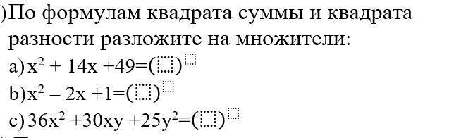 По формулам квадрата суммы и квадрата разности разложите на множители: Фото ниже помогите пожалуйста