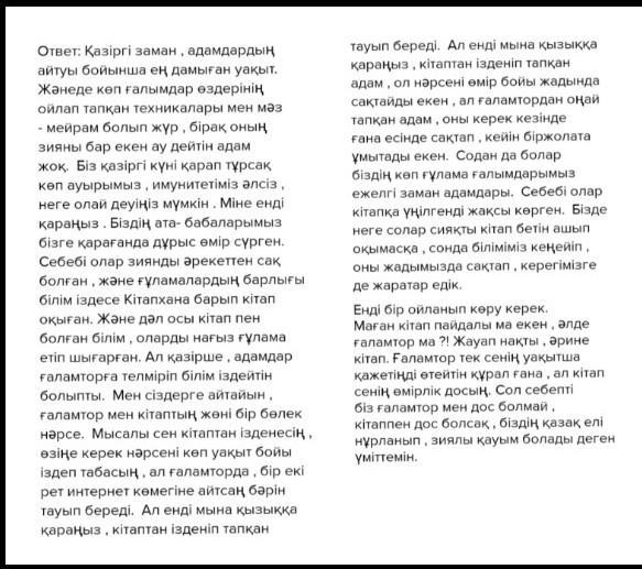 Төменде берілген тақырыптардың бірін таңдап, дискуссивті эссе жазыңыз..Ғаламтор кітаптай бола алмайды..Ұлттар достығының ұйытқысы-қазақ елі.Өзге ұлт өкілдерін бауырыңдай көру міндет пе?.Фаст-фуд өнімдерінің адам ағзасына зияны туралы біле тұра жақсы көреміз.Неге?