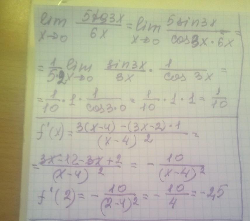 1)вычисли значение предела:limx->0 5tg3x/6x