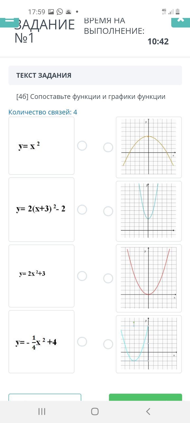 Пусть для определенности: функции имею номера 1, 2, 3 и 4, а графики - а, б, в и г.