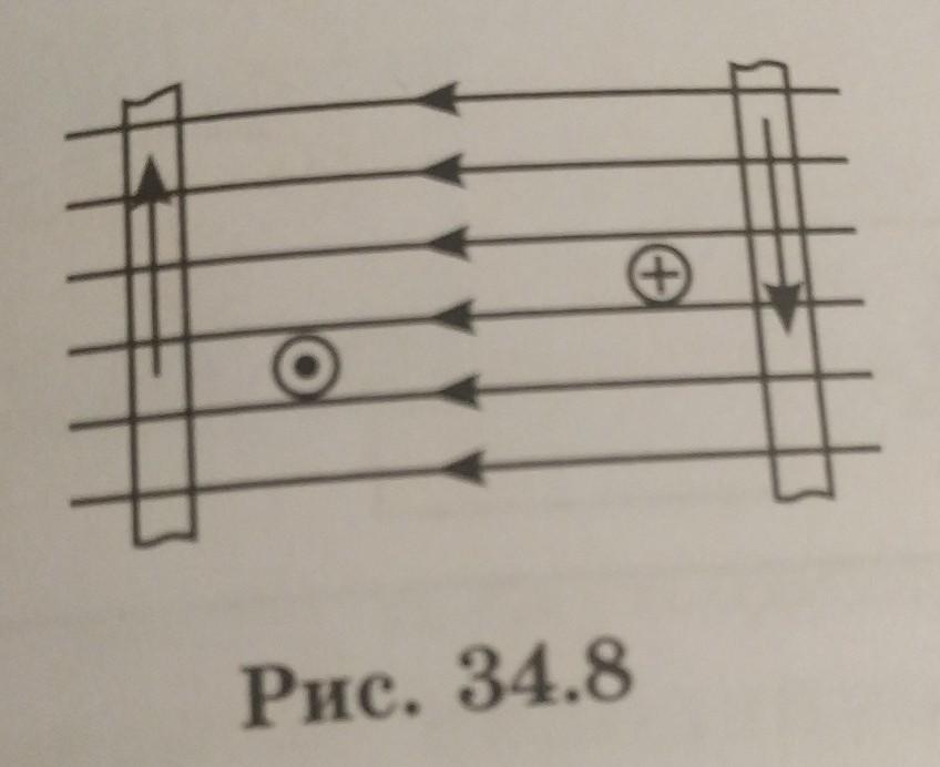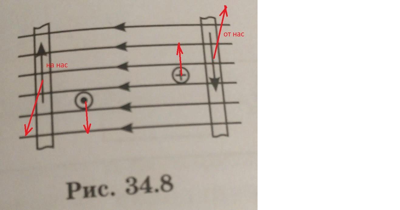 На рисунке 34.8 изображены четыре проводника с током, находящиеся в магнитном поле. Как движется каждый из этих проводников? Куда направлена сила, действующая на каждый из этих проводников?