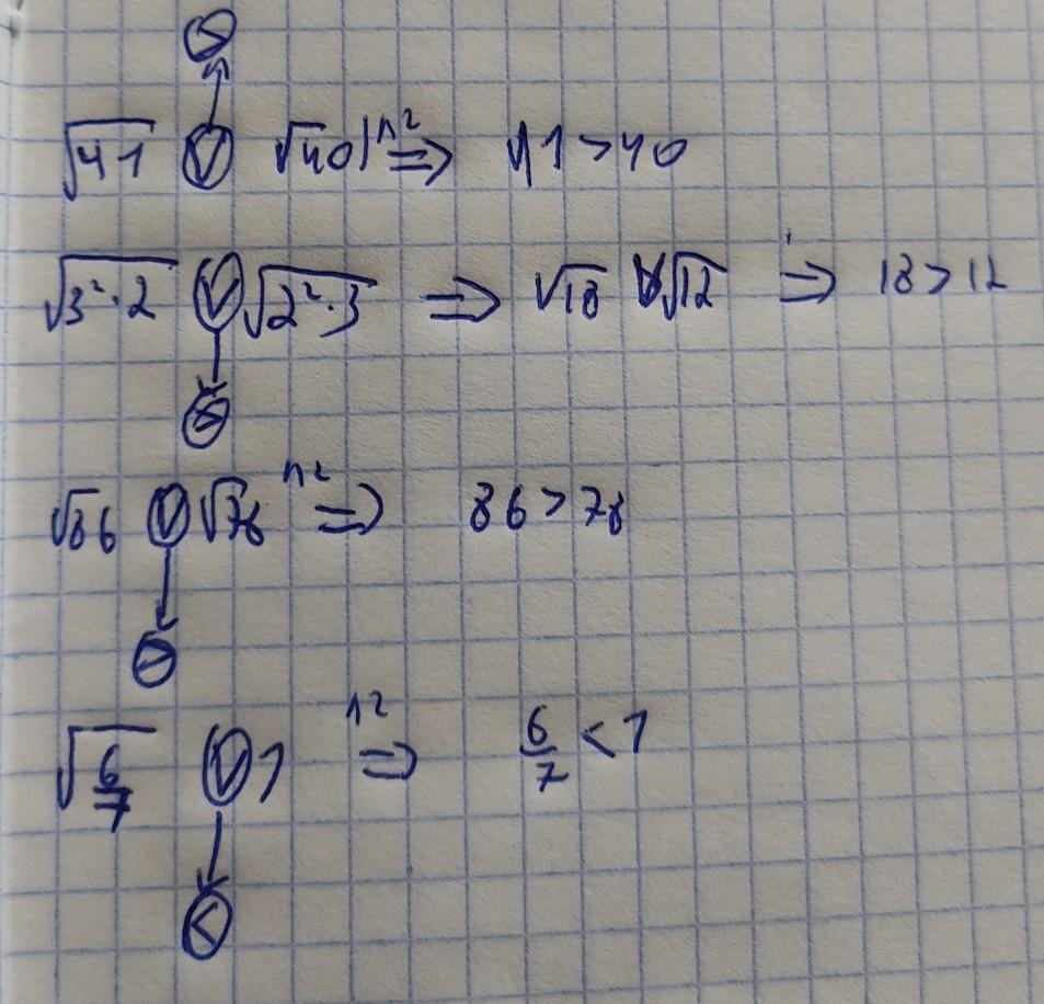 P.P/S: При возведении неравенства в одинаковую чётную степень его знак не изменится, поэтому так и поступим, чтобы числа можно было сравнить (первое правило — прямое следствие этого)