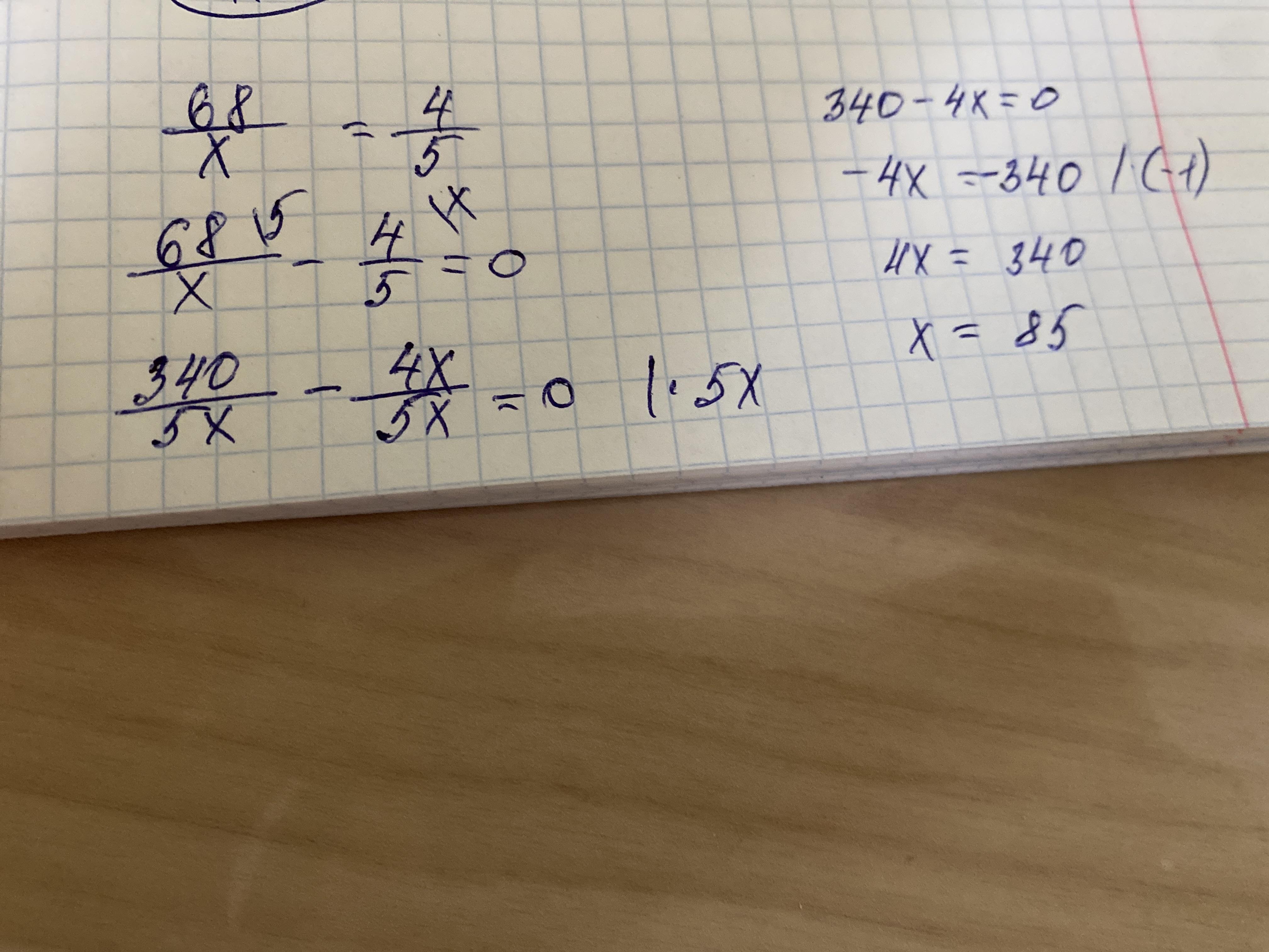 При каком значении x верно равенство: дробь, числитель — 68, знаменатель — x = дробь, числитель — 4, знаменатель — 5 ?