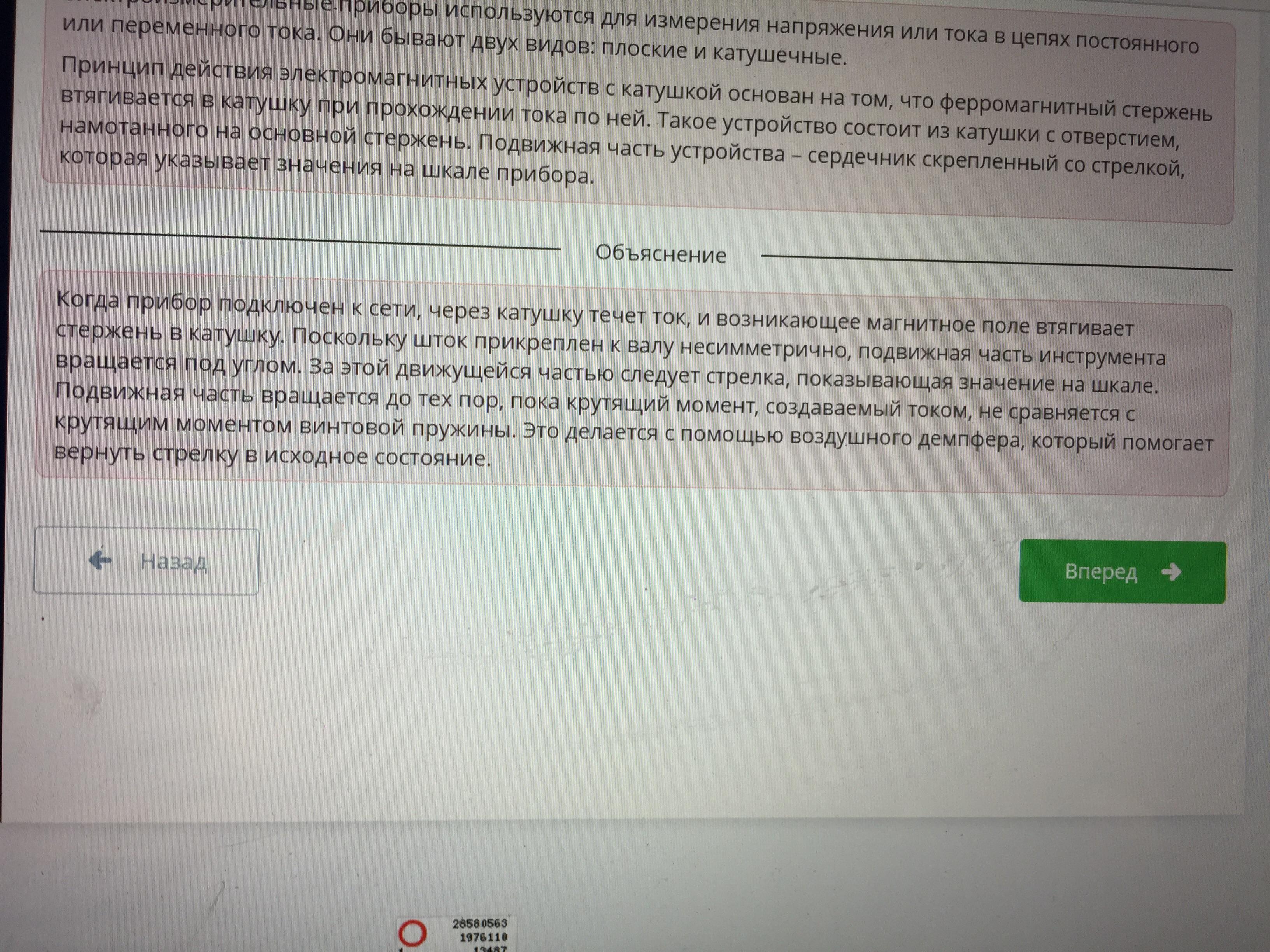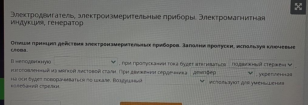 Опиши принцип действия электромагнитных приборов и Заполни пропуски используя ключевые слова