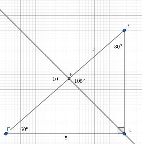 ∠OFK = 105° ⇒ ∠EFK = 180-105 = 75°