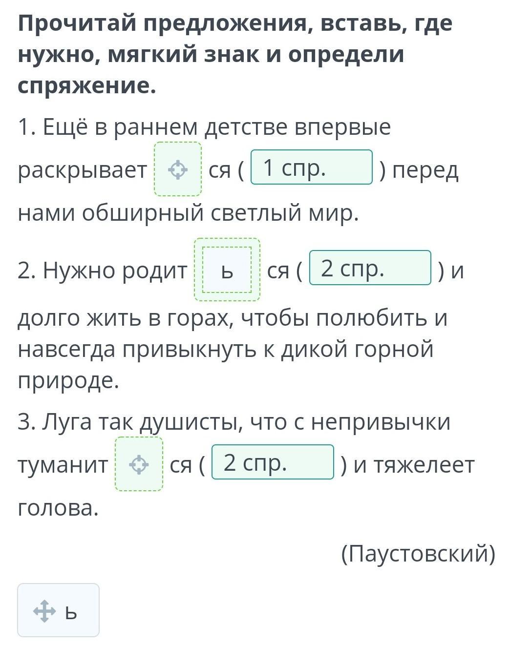 Прочитай предложения, вставь, где нужно, мягкий знак и определи спряжение.