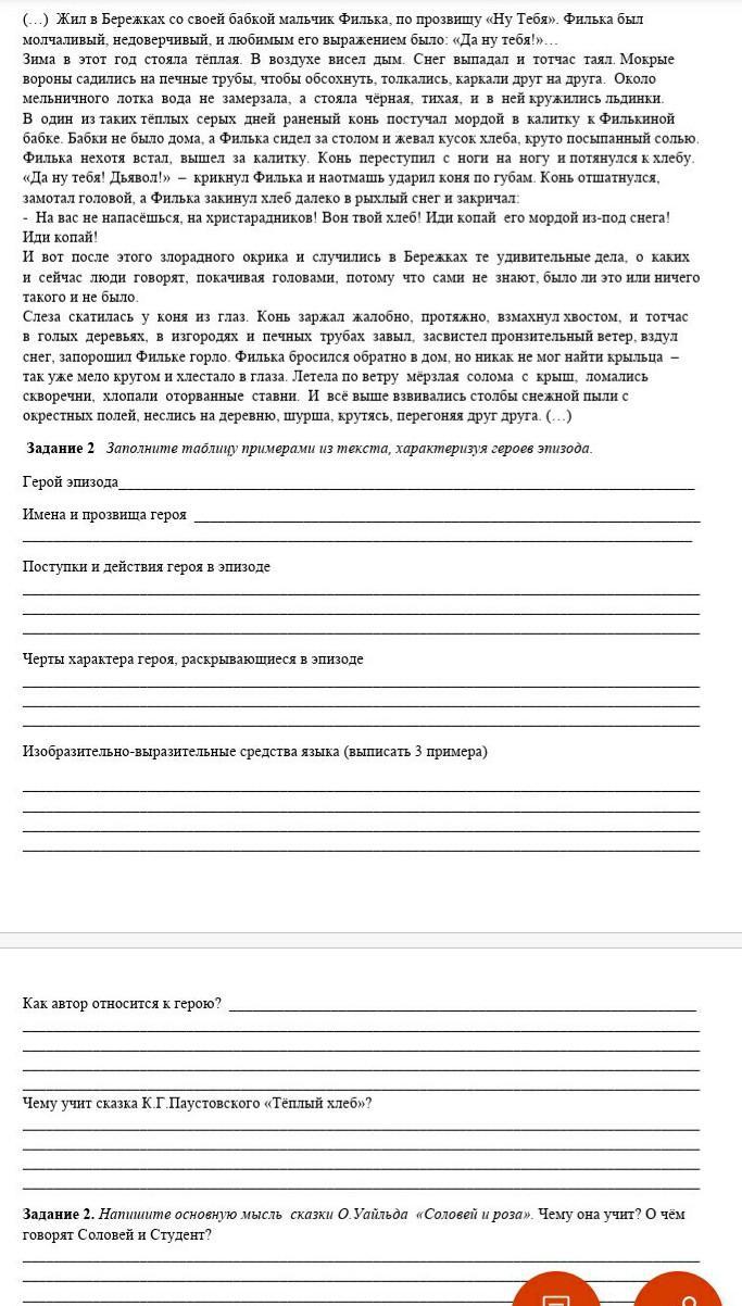 Задания 1 Прочитайте эпизод из произведения К. Паустовского «Теплый хлеб».