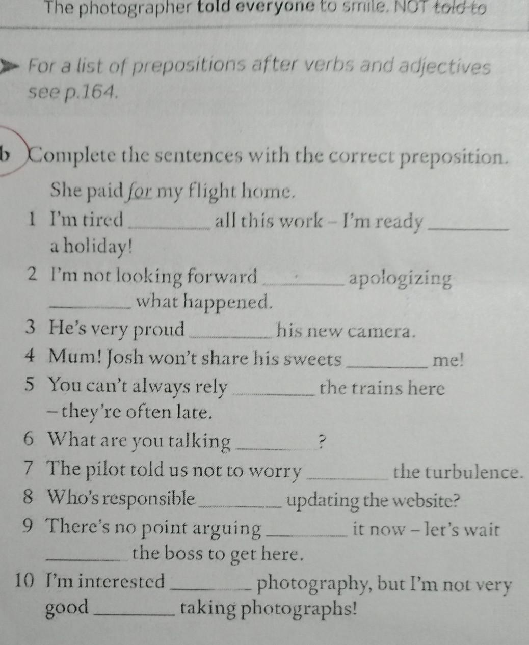 1 of/for 2 to/ for 3 of 4 with 5on 6 about 7 about 8 for 9 about/for 10 in/at