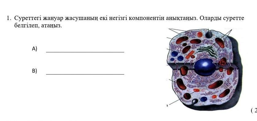 Суреттегі жануар жасушаның екі негізгі компонентін анықтаңыз. Оларды суретте белгілеп, атаңы
