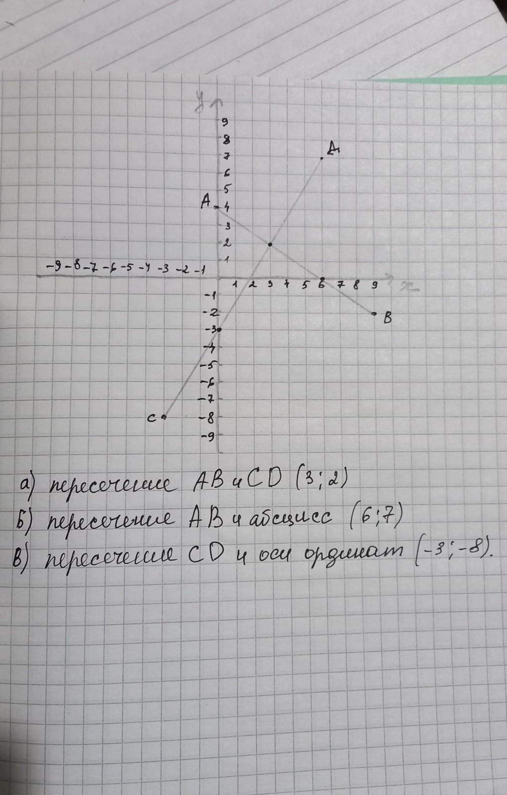 A(0;4), B(9;-2), C(-3;-8), A(6;7)