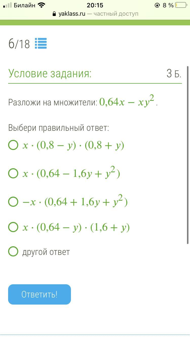 2) 0,64х-ху² = х(0,64-у²) = х(0,8-у)(0,8+у)