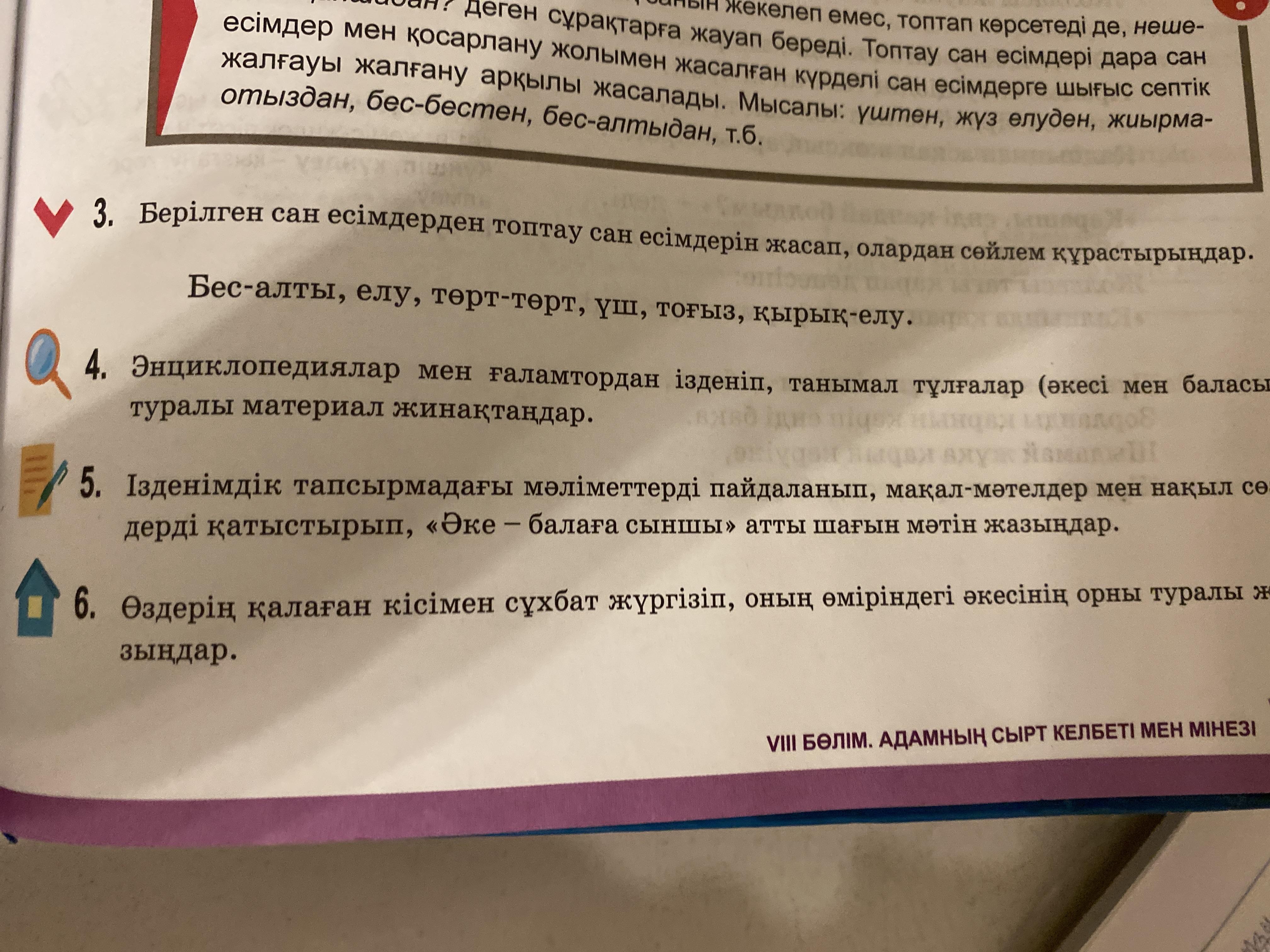 Менің атам елу алты жаста. Әжем елу жасқа толды. Қырық төрт күресші сайысқа түседі. Үш нұсқаның ішінен дұрыс жауабын таңдап. Алан тоғызыншы сыныпта оқиды. Кітапта төрт мың елу бет бар.