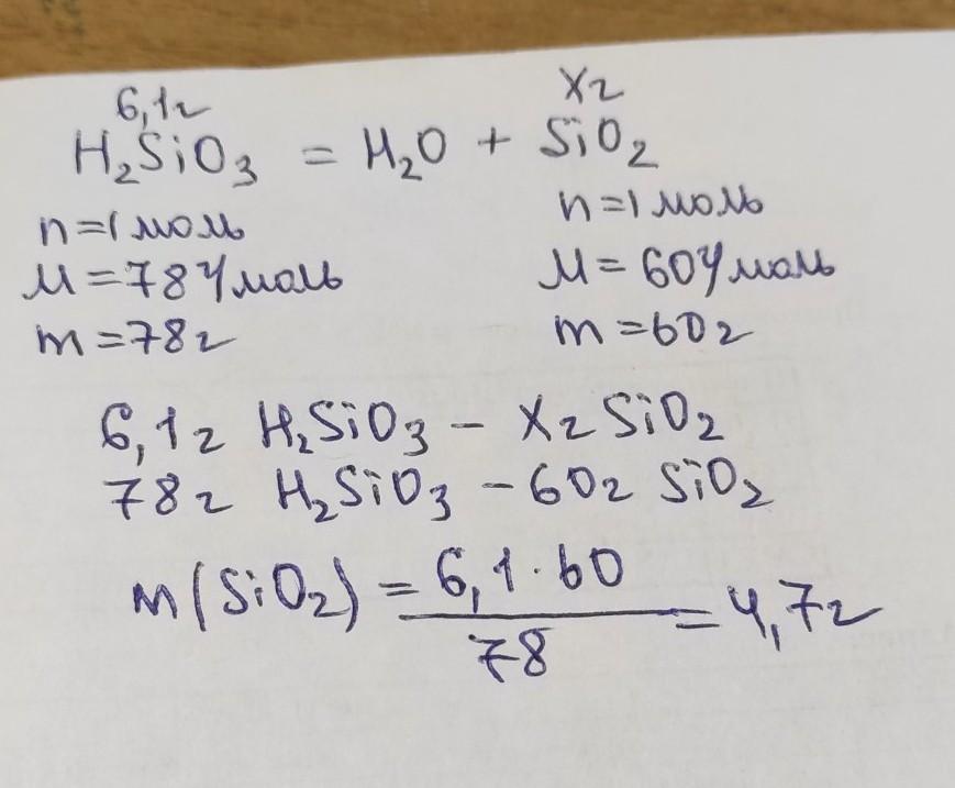 При разложении 6,1 г кремниевой кислоты образуется диоксид кремния массой: 1) 1 грамм 2) 2 грамм 3) 5 грамм 4) 4 грамм