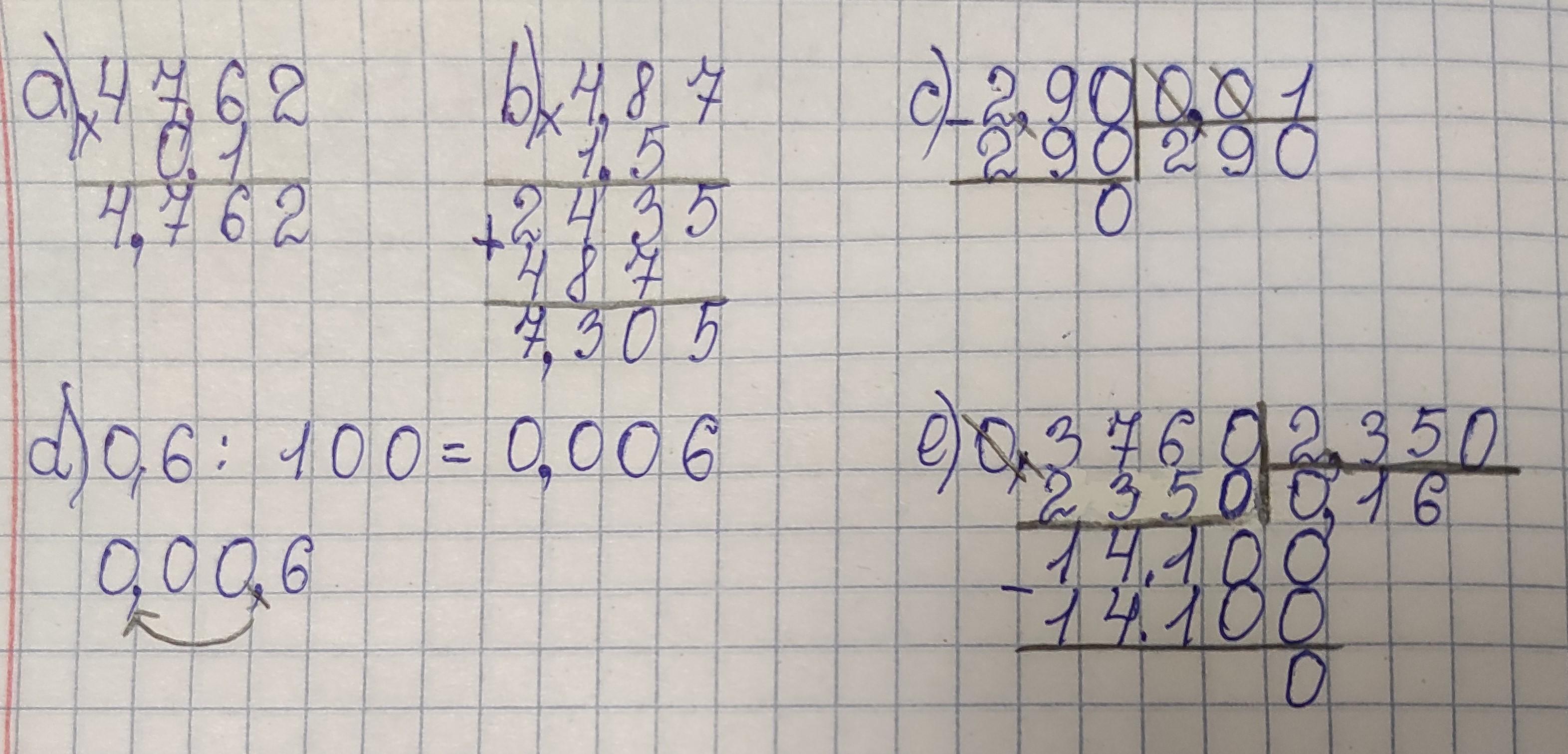 Чтобы разделить десятичную дробь на 0,1; 0,01; 0,001 и т. д., нужно перенести в этой дроби запятую на столько знаков вправо, сколько в делителе стоит нулей перед единицей.