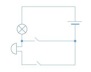 Нарисуйте схему соединения батарейки, лампочки, звонка и двух ключей, при которой лампочка загорается при включении звонка, но может быть включена при неработающем звонке. Покажите направление тока в цепи.