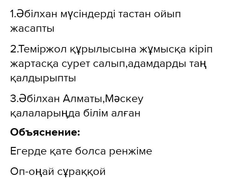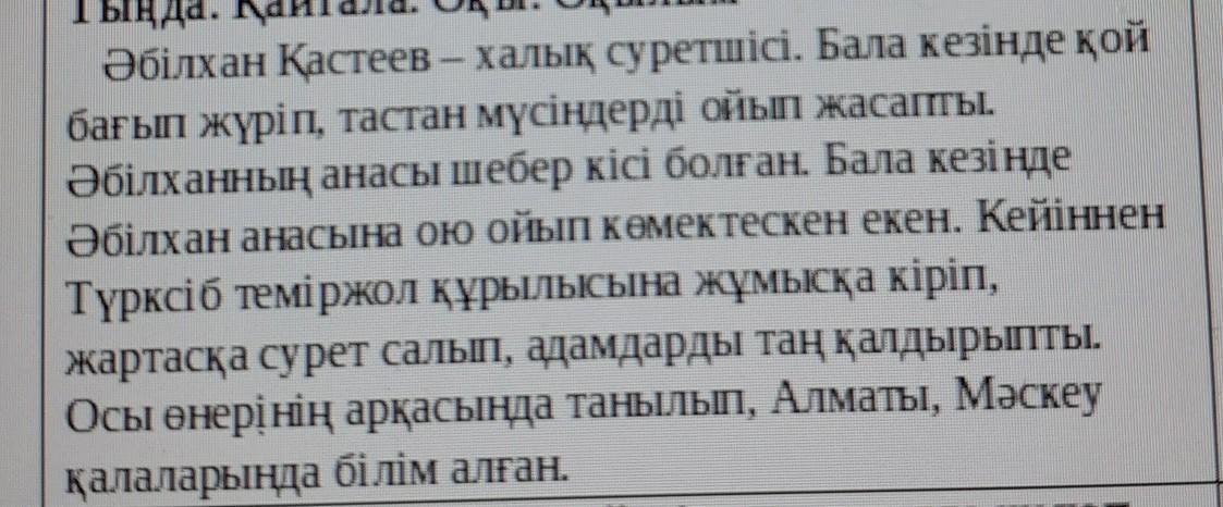 1 – тапсырма. Мәтінге сүйеніп, сұрақтарға жауап бер.