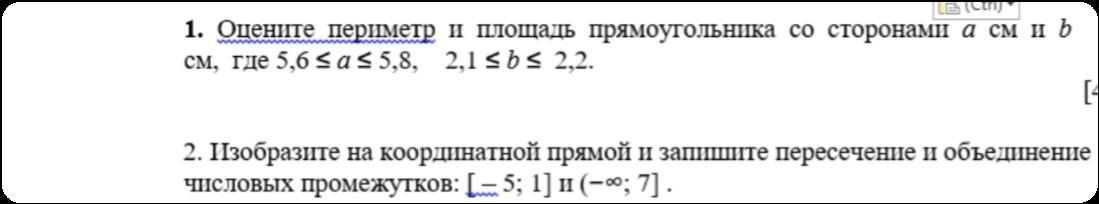 1. 5,6 <= a <= 5,8; 2,1 <= b <= 2,2.