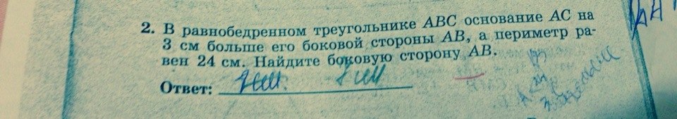 х (см) - боковая сторона РАВНОБЕДРЕННОГО треугольника АВ=АС