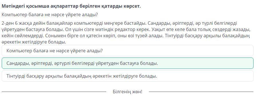 Компьютер балаға не нәрсе үйрете алады?