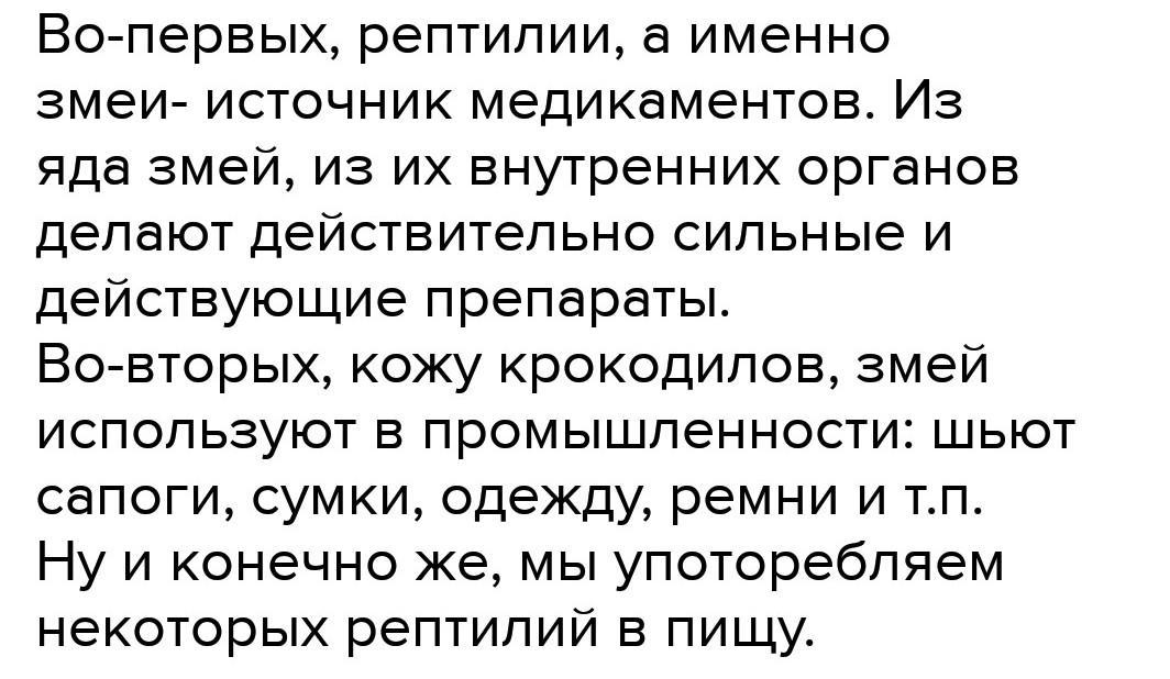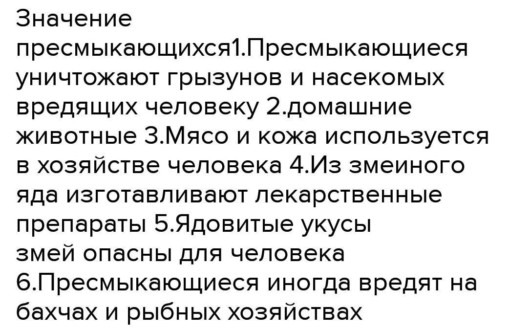 Пресмыкающиеся служат пищей для разных групп позвоночных животных (например, хищных птиц). Некоторые виды змей, черепах, крокодилов, а также их яйца употребляет в пищу человек. Человек употребляет в пищу их мясо, жир, яйца.