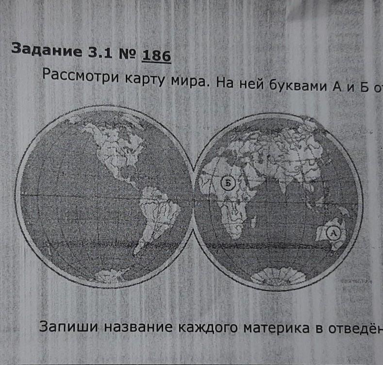 Рассмотри карту мира. На ней буквами А и Б отмечены два материка.