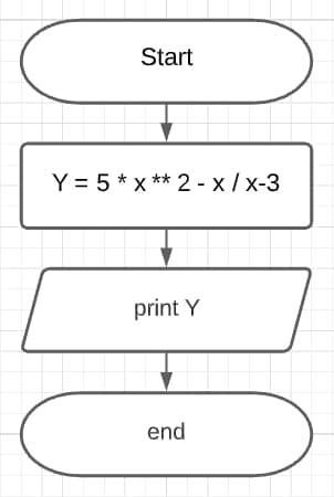 ПОМОГИТЕ ПОЖАЛУЙСТА . СОСТАВЬТЕ БЛОК СХЕМУ И НАПИШИТЕ ПРОГРАММУ ВЫЧИСЛЯЮЩУЮ ЗНАЧЕНИЕ Y ПО ФОРМУЛЕ: Y = 5x(в квадрате) - х/х-3