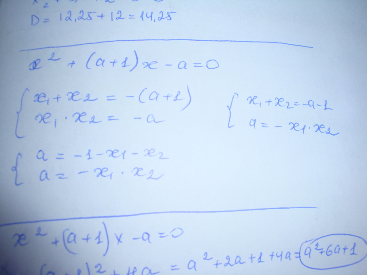 Известно что x1 и x2- корни уравнения x2+(а+1)x-a=0 Вычислете учитывая возможные значения параметра а, значение выражении: x1+x2;