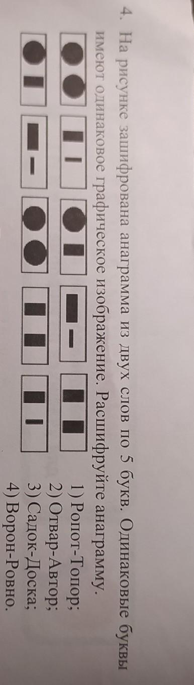 на рисунке зашифрована анаграмма из двух слов по 5 букв. Одинаковые буквы имеют одинаковое графическое изображение. Расшифруйте анаграмму