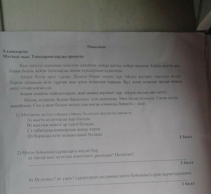 2) a)Автор қыс мезгілін адамның мінезіне ұқсатады. Себебі, қыс адамның мінезі секілді кейде қатты, кейде жұмсақ болады.