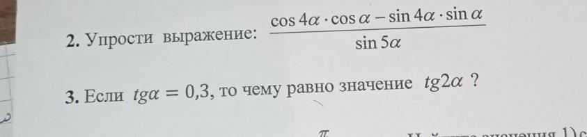 2. cos(4a+a)/sin(5a) = cos(5a)/sin(5a) = ctg(5a)