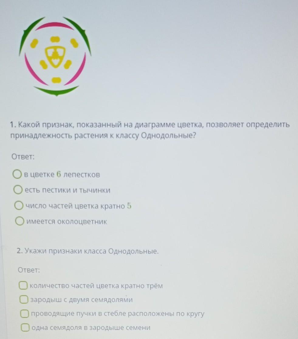 1- в цветке 6 лепестков. (Признак однодольных- трехчленный цветок)