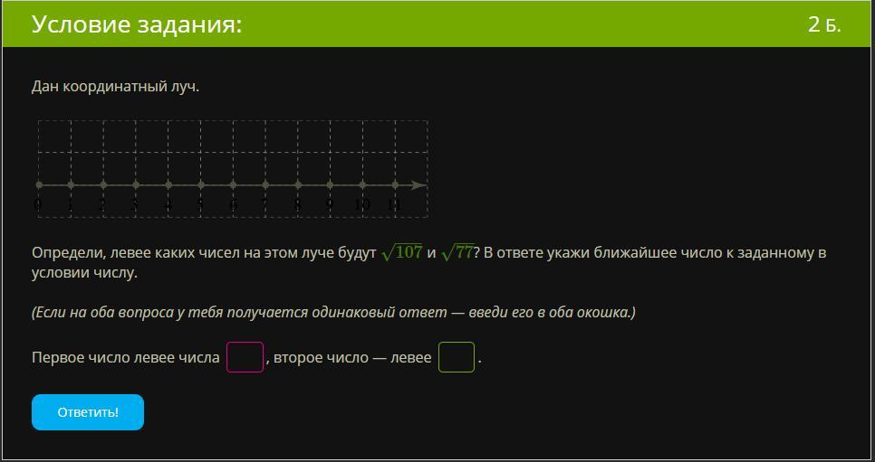 Если ближайшимии двумя числами имеющими в результате возведения в корень целое число к 107 это 100 и 121, что означает что извлечённое число 170 находится между 10 и 11, левее 11