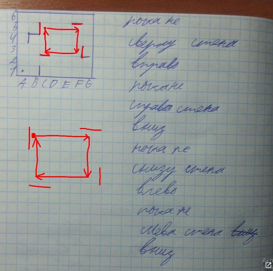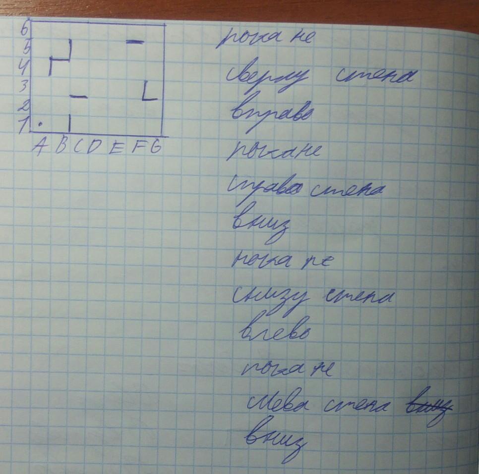 2) Т.к. последнее условие "пока не слева стена", то рисуем стену слева от начальной точки