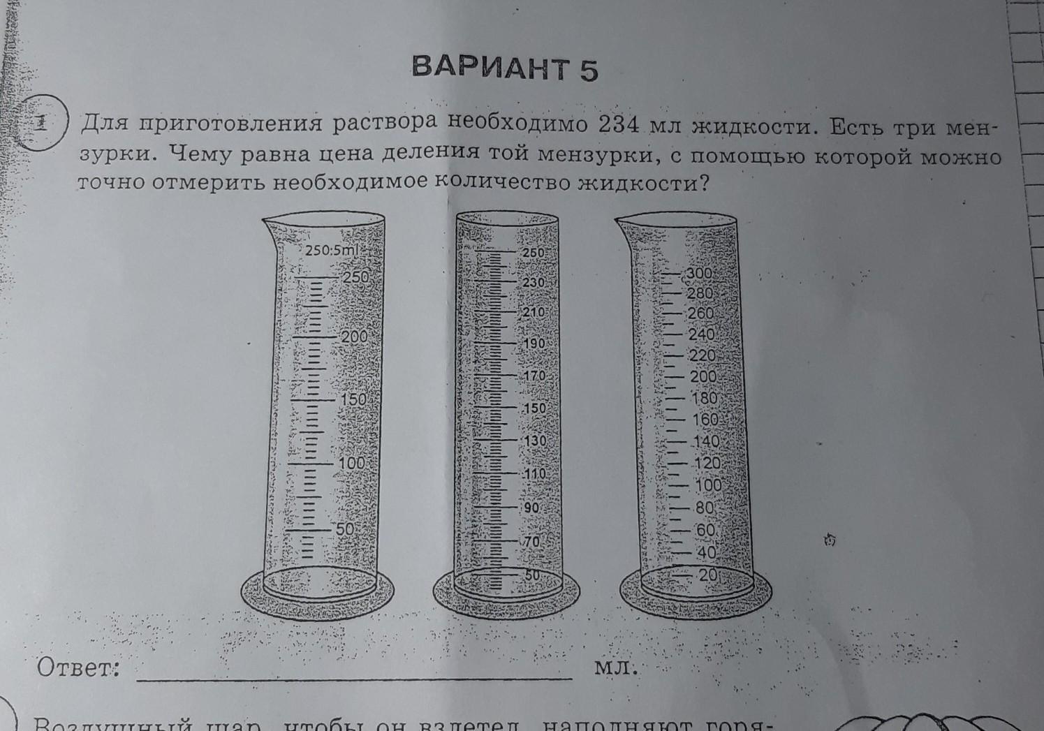 Точнее отмериь необходимое количество жидкости можно спомщью 2 мензурки. Её цена деления равна 1