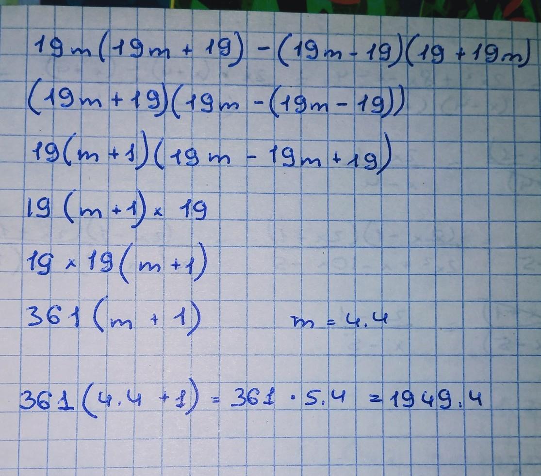 19m(19m+19)−(19m−19)(19+19m)=(19+19m)((19m-(19m−19))=(19+19m)(19m-19m+19)=(19+19m)·19=19(1+m)·19=19²(1+m)