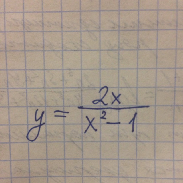 Результат: y=0. Точка: (0, 0) Точки пересечения графика функции с осью координат X: График функции пересекает ось X при y=0, значит нам надо решить уравнение: 2*x/(x^2-1) = 0 Решаем это уравнение здесь и его корни будут точками пересечения с X: